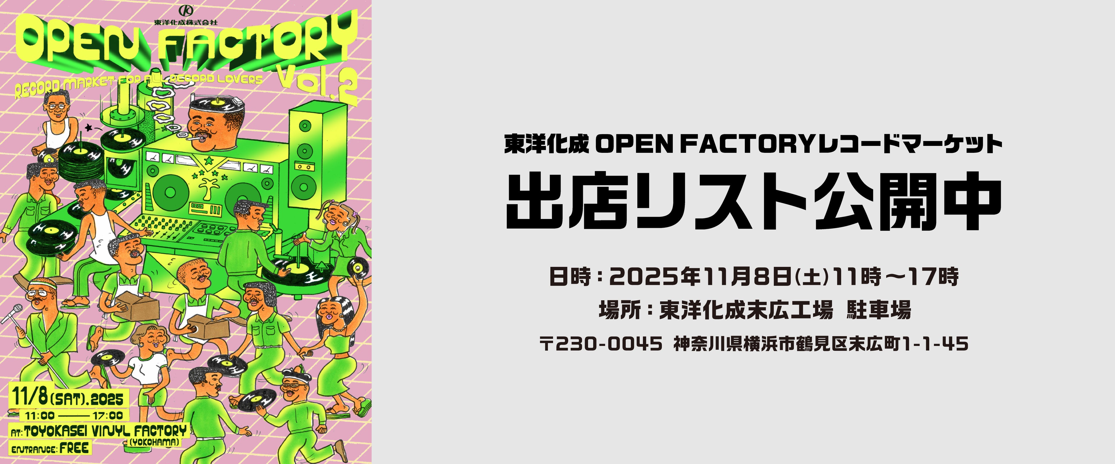 アナログカルチャーをより多くの人に楽しんでもらうためレコードを中心としたマーケットとDJイベントを普段中々入れない東洋化成のレコード製造工場にて開催致します。